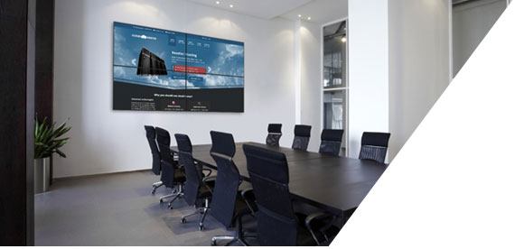 El Sistema de Video Wall para Sala de Juntas puede mostrar el contenido de manera horizontal o vertical, o inclusive de manera irregular, como una Wideo Wall Art, para un mayor impacto. Además se puede programar el contenido, administrar los dispositivos y aplicaciones de manera fácil y rápida a través de una interfaz remota e intuitiva.